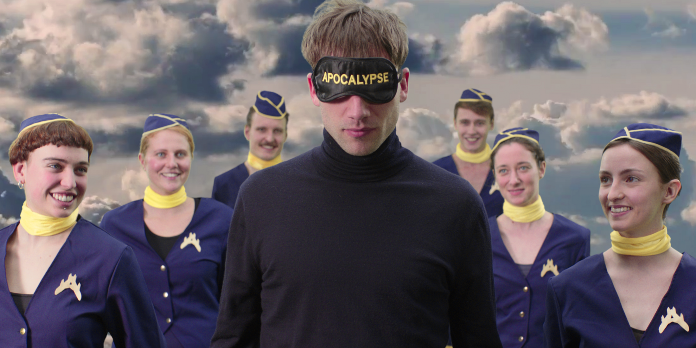 “Apokalipses aviolīnijas” ir neesošas lidsabiedrības reklāma, kas liek mums apzināties savas pretrunas – ikviens vēlas ceļot, iepazīt pasauli, būt brīvs, patērēt, lai arī mēs visi zinām, kādas sekas lidošana atstāj uz dabu. Vai esam gatavi pieļaut kompromisus, lai dzīvotu pilnībā atbildīgi? Tam jābūt individuālam vai politiskam lēmumam?