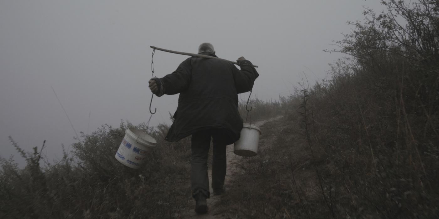 "Mēs sekojam sirmgalvim, kas iet pa miglainu kalnu taku Ķīnā. Vienā kadrā viņš nes somu, citos – rīsu maisus, malku vai ūdens spaiņus. Viņu filmē no rīta, vakarā un naktī. Gadalaiki mainās, kamēr mēs ejam kopā ar viņu cauri ziemas tumsai līdz dzidram pavasara rītam."